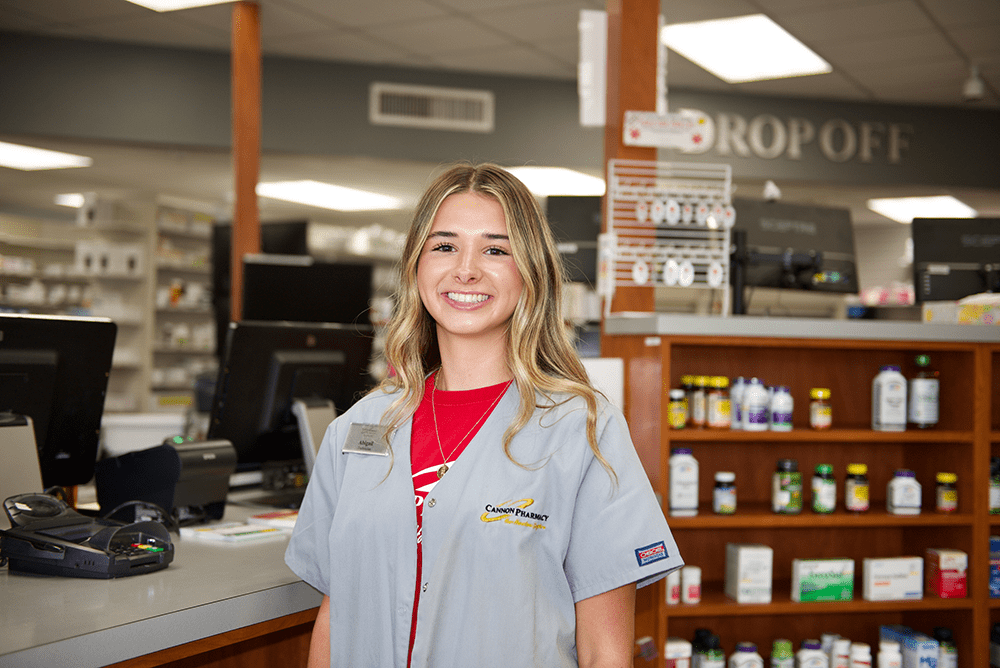 Since she was 16, Abby Gordon ’25 has worked at Cannon Pharmacy in Kannapolis, juggling her shifts with high school classes and college courses at Rowan-Cabarrus Community College and UNC Charlotte.