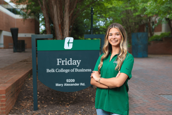 When Gordon first started classes to earn a finance major and economics minor in the Belk College of Business, she found the University’s size intimidating. Living with her family in a pastoral part of Mooresville — with a circle of friends who had been by her side since grade school and work associates who had become familiar colleagues and friends — she was nervous about stepping outside those close circles.